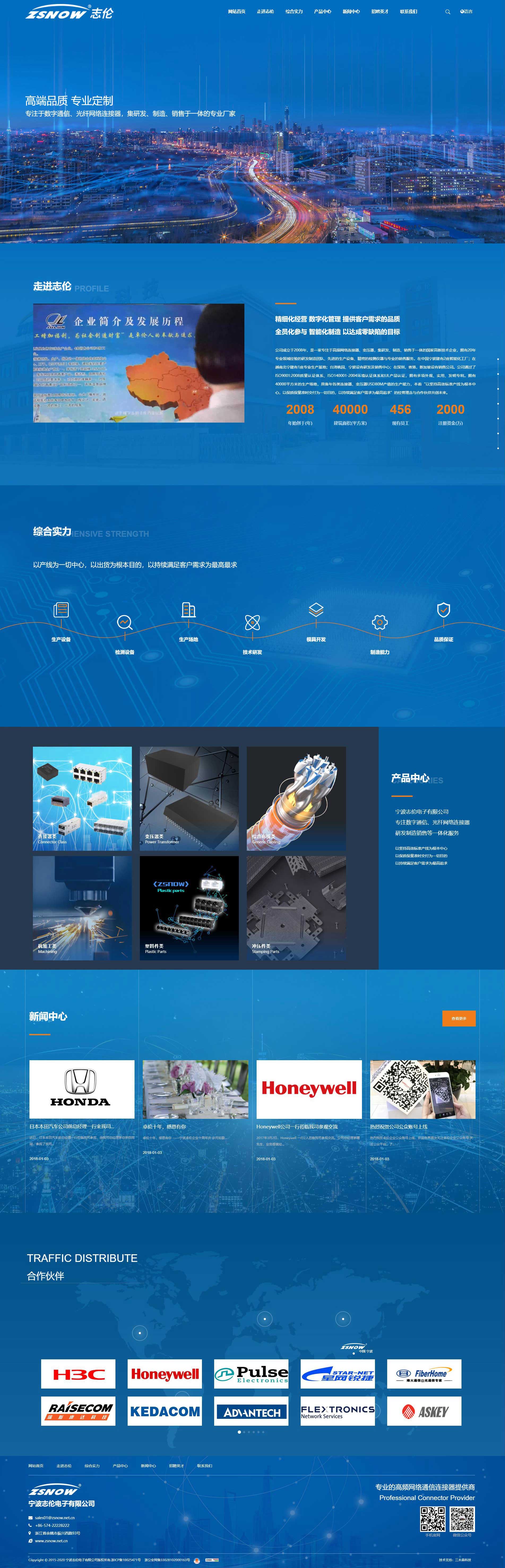 公司成立于2008年,是一家專注于高頻網絡連接器、變壓器,集研發(fā)、制造、銷售于一體的國家高新技術企業(yè),擁有20年專業(yè)領域經驗的研發(fā)制造團隊、先進的生產設備、精密的檢測儀器與專業(yè)的銷售服務。在中國寧波建有2座智能化工廠;在越南北寧建有1座專業(yè)生產基地;臺灣桃園、寧波設有研發(fā)及銷售中心;在深圳,香港,新加坡設有銷售公司。公司通過了ISO9001:2008質量認證體系、ISO140001-2004環(huán)境認證體系和UL產品認證,擁有多項外觀、實用、發(fā)明專利。擁有40000平方米的生產場地,具備年各類連接器、變壓器USD80M產值的生產能力,本著“以堅持高效標準產線為根本中心,以保質保量準時交付為一切目的,以持續(xù)滿足客戶需求為最高追求”的經營理念與合作伙伴共創(chuàng)未來。